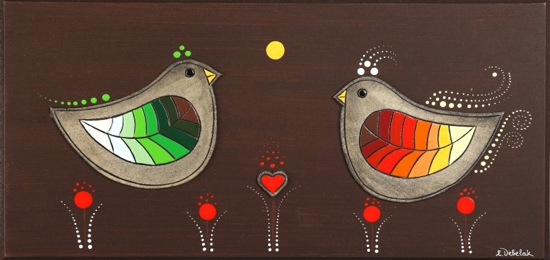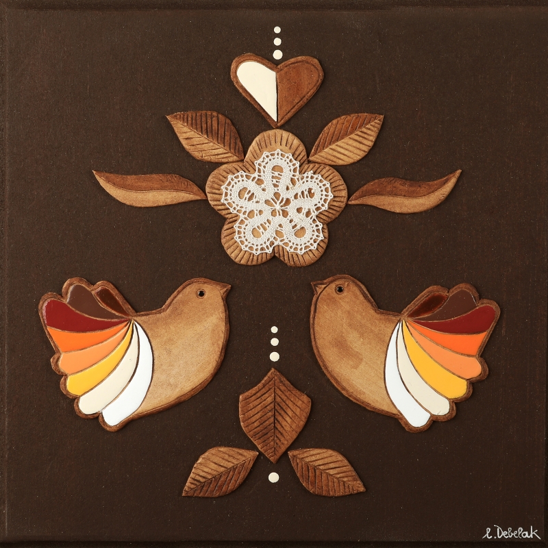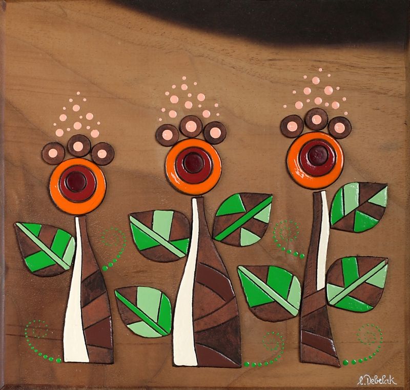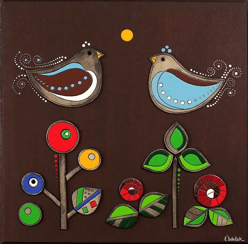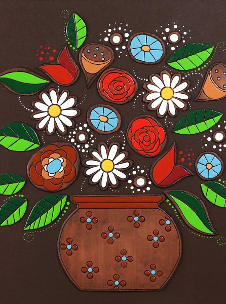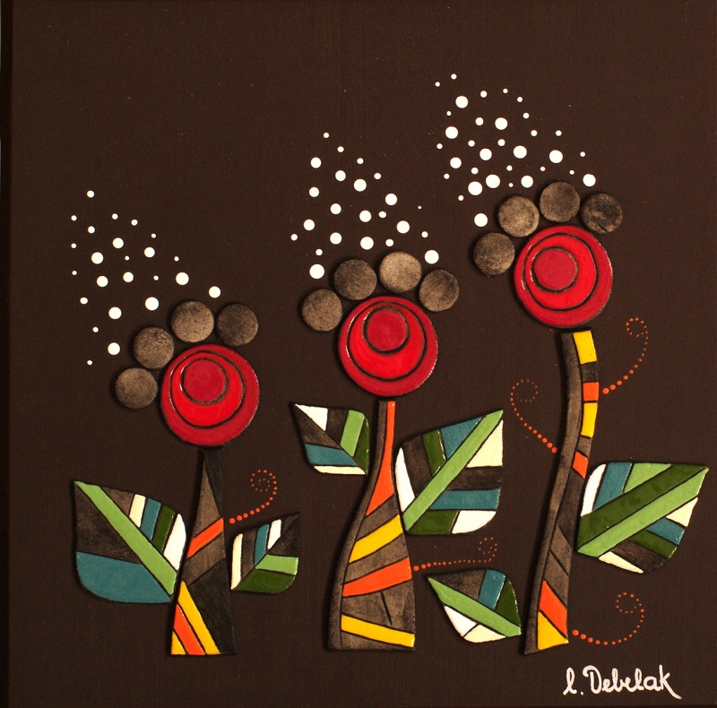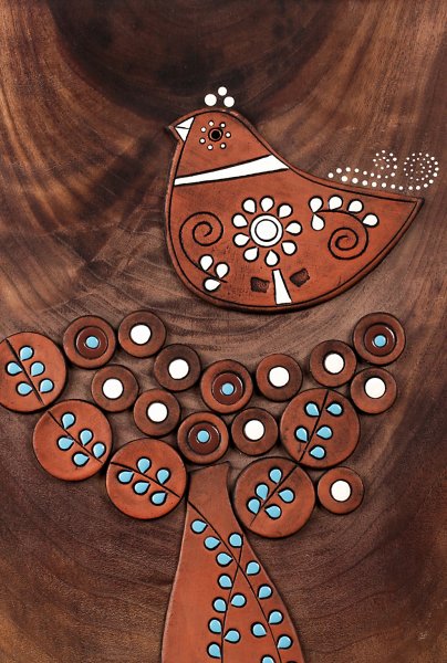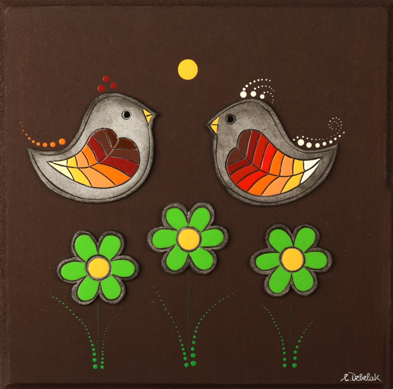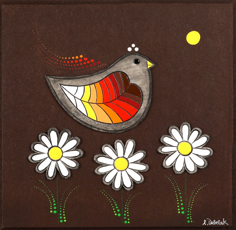 Reliefi v pisanih živahnih barvah.